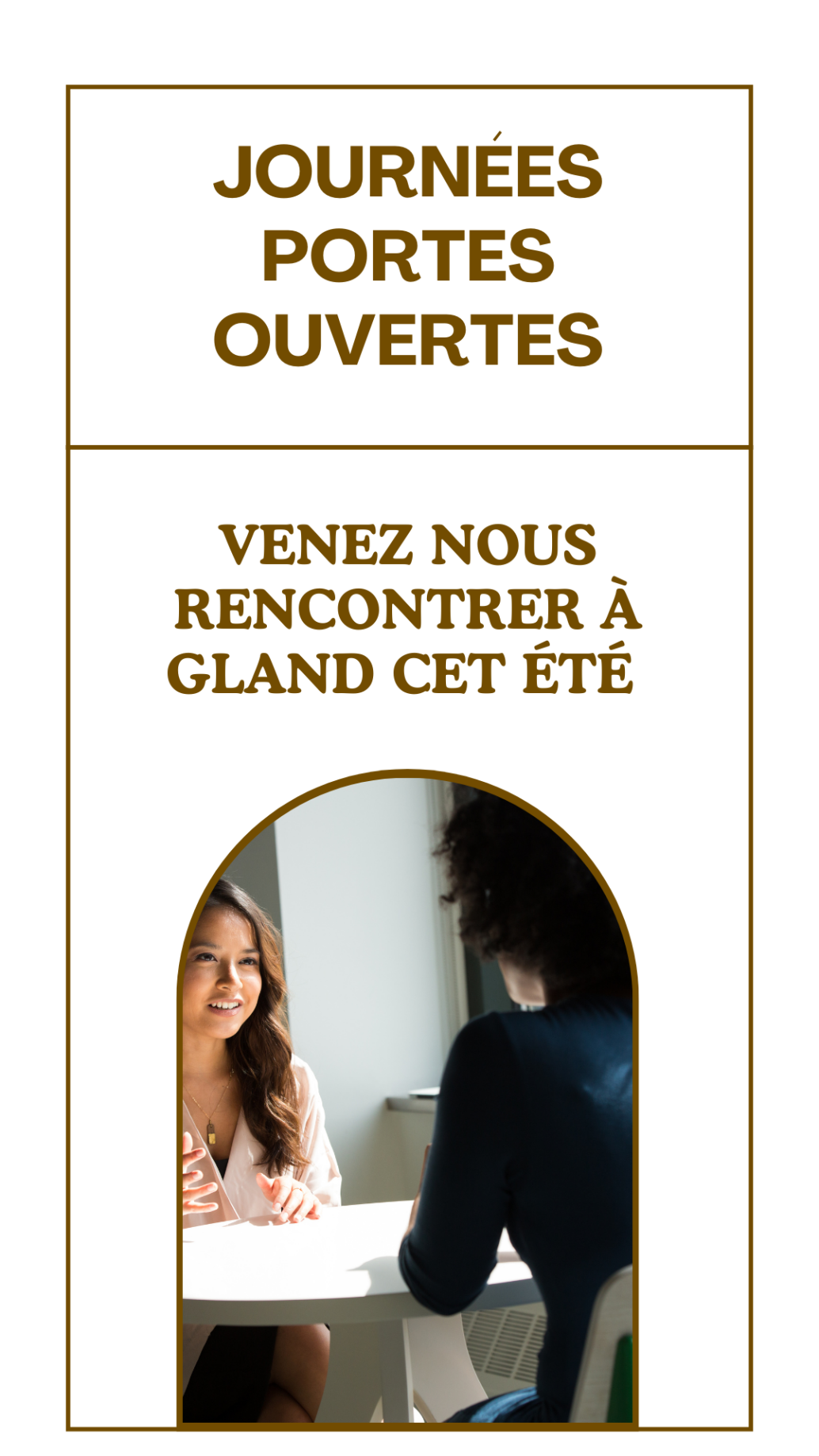 Pour découvrir nos formations et notre école, nous vous invitons à assister à l'une de nos séances d'information. Ces occasions vous permettront de mieux comprendre nos cursus et de poser toutes vos questions. En visio-conférence et sur place, à Gland !
